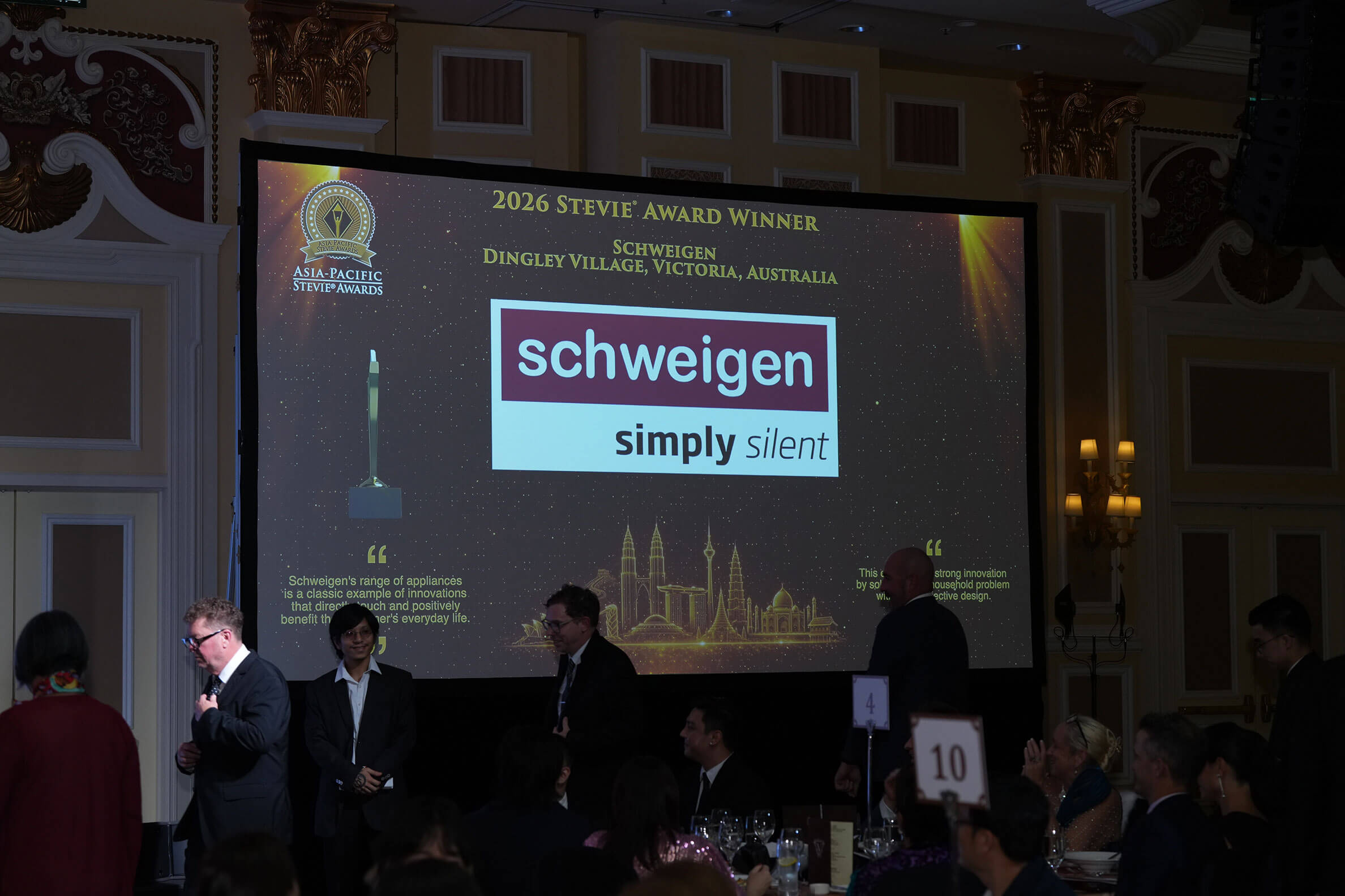 Schweigen is proud to announce it has won a Gold Stevie® Award at the 2026 Asia-Pacific Stevie® Awards for Excellence in Innovation in Consumer Product & Service Industries. On the official winners list, Schweigen, Melbourne, Victoria, is recognised for “Schweigen Silent Rangehoods – Changing Ventilation,” highlighting the brand’s leadership in silent kitchen ventilation and consumer product innovation.